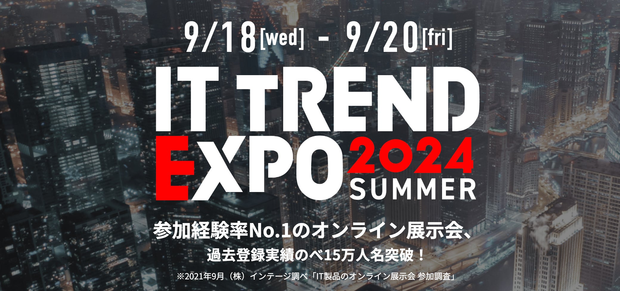 ITトレンドEXPO2024は9月18日(水)〜20日(金)に開催される国内最大級のオンライン展示会であり、最新のIT製品やサービスを紹介するだけでなくIT企業の経営層やスポーツ選手、タレントによるトークセッションが行われます。